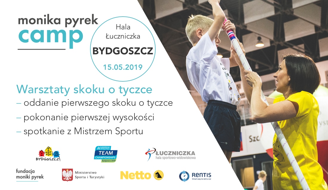 Już 15 maja 2019 r. w godzinach 11:00-14:00 w Hali Widowiskowo-Sportowej Łuczniczka w Bydgoszczy odbędzie się „Monika Pyrek Camp“ – warsztaty skoku o tyczce dla dzieci.