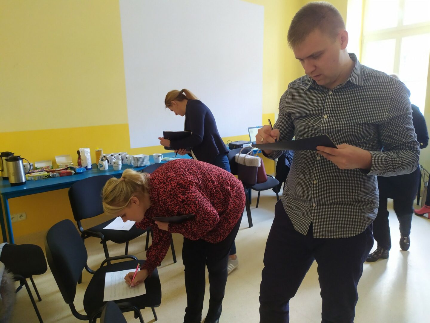 Na zakończenie szkolenia szukaliśmy pomysłów na zaprezentowanie projektu i jego efektów. Ta inspirująca rozmowa miała pomóc uczestnikom przygotować się do prezentacji projektów podczas Spotkania podsumowującego, które odbędzie się w maju w Warszawie.