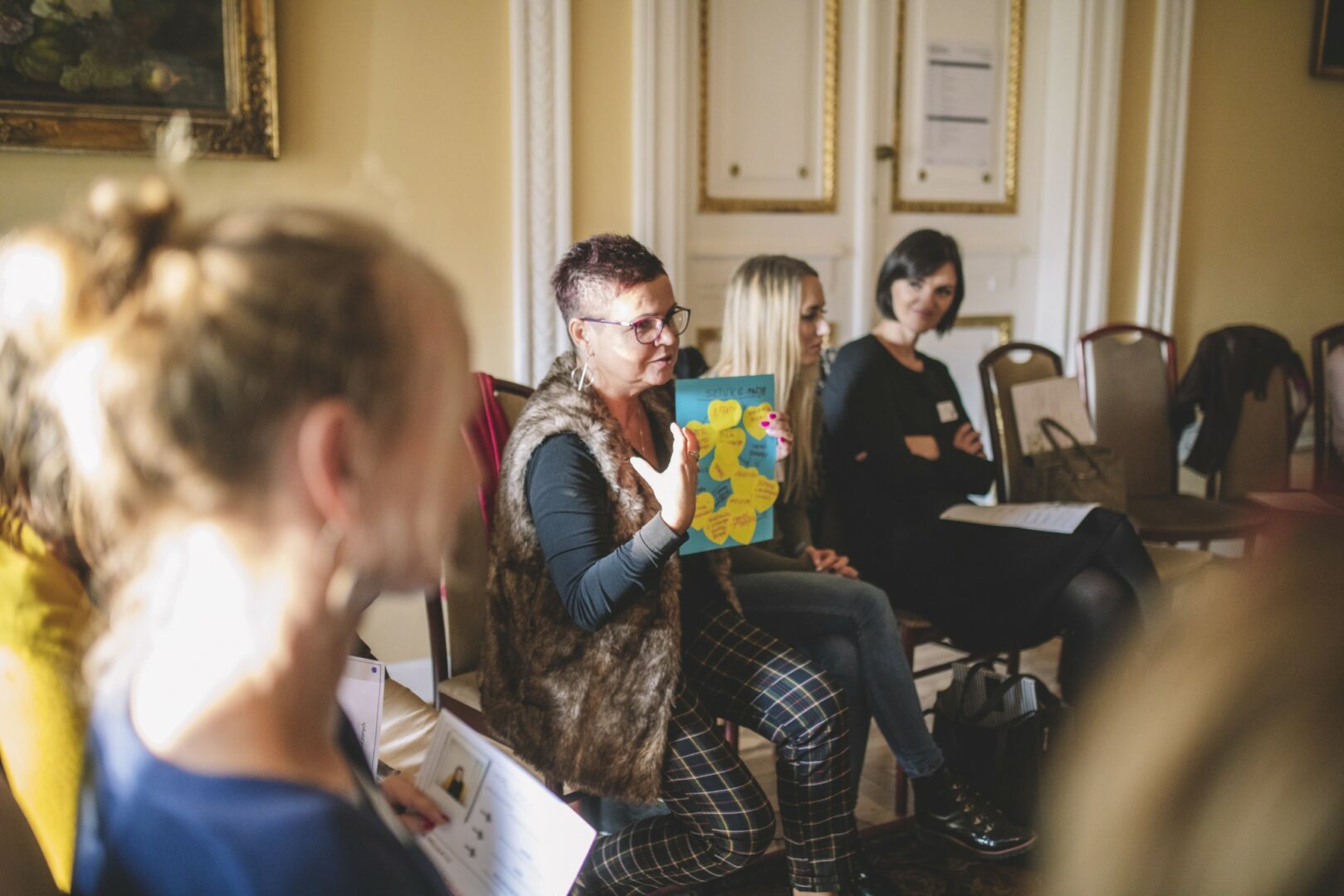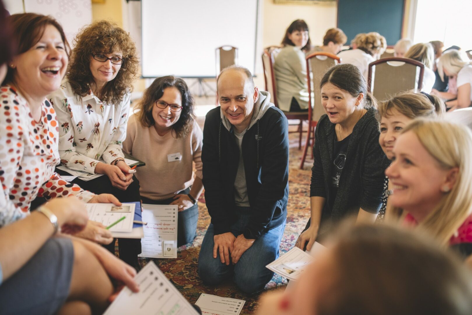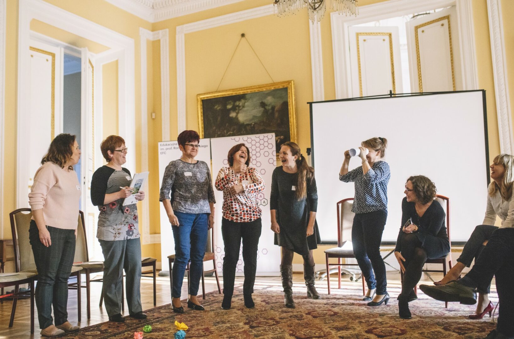 Następnie przeszliśmy do pracy warsztatowej. Po części integracyjnej zajęliśmy się kuchnią projektową. Razem z uczestnikami szukaliśmy niuansów, które odróżniają projekt edukacyjny od “prawie projektu”. Pracowaliśmy nad checklistą, która każdej osobie realizującej projekt edukacyjny pozwoli sprawdzić, czy w jej działaniach nie brakuje żadnego ważnego elementu. W drugi dzień nauczycieli wprowadziła animatorka kultury, edukatorka, trenerka antydyskryminacyjna, Hanna Zielińska, która zachęcała ich do realizowania projektów otwartych na różnorodność. Podczas warsztatu pokazała uczestnikom antydyskryminacyjną perspektywę i wartość włączania w działania różnych osób i grup.