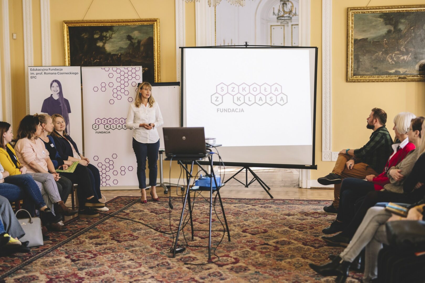 Spotkanie otworzyły prezeski dwóch fundacji współorganizujących program – Emilia Gromadowska z Edukacyjnej Fundacji im. prof. Romana Czerneckiego EFC i Agata Łuczyńska z Fundacji Szkoła z Klasą. Opowiedziały o uzupełniających się doświadczeniach obydwu fundacji i łączących je wartościach, które znajdują odzwierciedlenie w programie Edukacja Inspiracja.