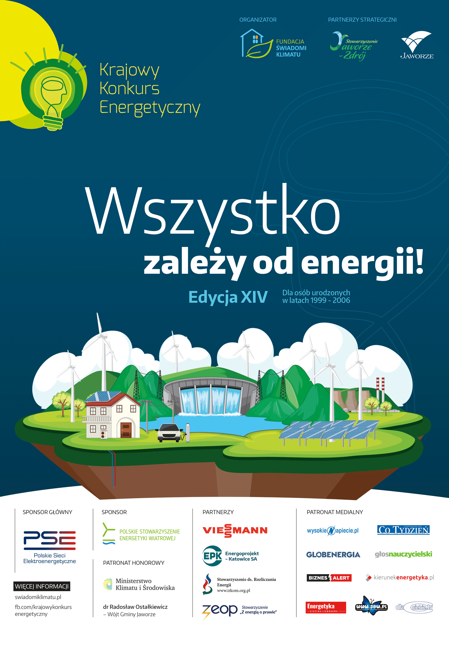 Organizator konkursu – Fundacja Świadomi Klimatu – zaprasza młodzież urodzoną w latach 1999 – 2006 do udziału w czternastej edycji Krajowego Konkursu Energetycznego. Zadaniem uczestników jest przygotowanie pracy pisemnej lub prezentacji na jeden z tematów określonych regulaminem i przesłanie jej na adres koordynatorki konkursu do 1 lipca 2022 roku.