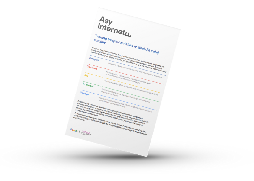 Zaangażowanie rodziny w zapewnienie dzieciom bezpiecznego udziału w społeczności internetowej zaczyna się od rozmowy w domu, której efektem ma być zobowiązanie się przez nie do bycia Asem Internetu, czyli roztropnym, ostrożnym, zdecydowanym, uprzejmym i odważnym użytkownikiem sieci. Broszura zawiera pomysły na zajęcia rodzinne przygotowane w oparciu o kodeks Asów Internetu.