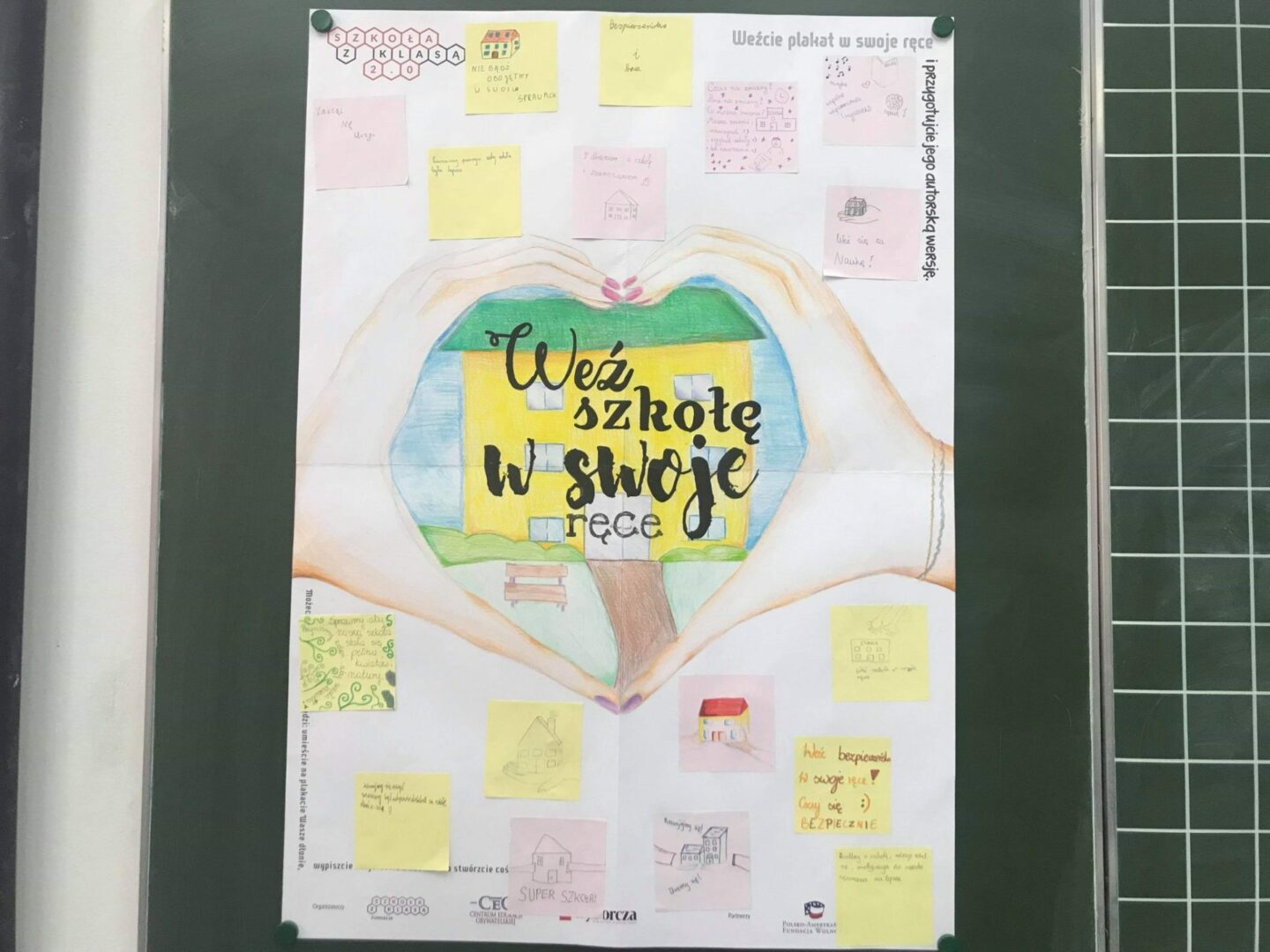 Padlet Szkoły z Klasą 2.0 to miejsce, w którym szkoły uczestniczące w programie mogą zamieszczać zdjęcia, filmiki i krótkie wpisy pokazujące ich działania. To również tam nauczyciele i uczniowie mogą zaprezentować własne wersje plakatów promujących program i hasło edycji. A w tym roku nie są to standardowe plakaty! W myśl tegorocznego hasła – Weź szkołę w swoje ręce – postanowiliśmy przekazać w ręce szkół plakaty w formie „zrób to sam”.