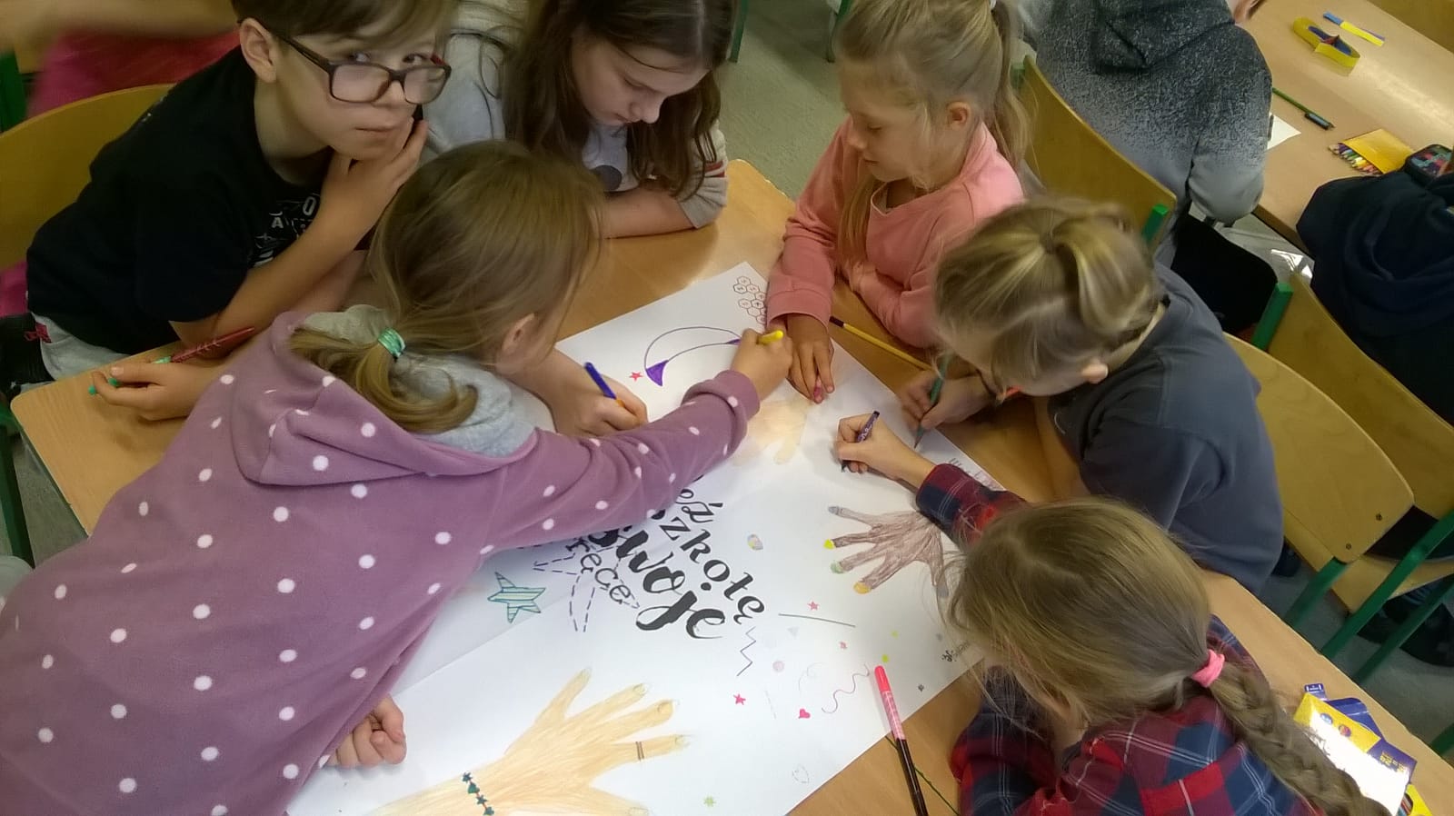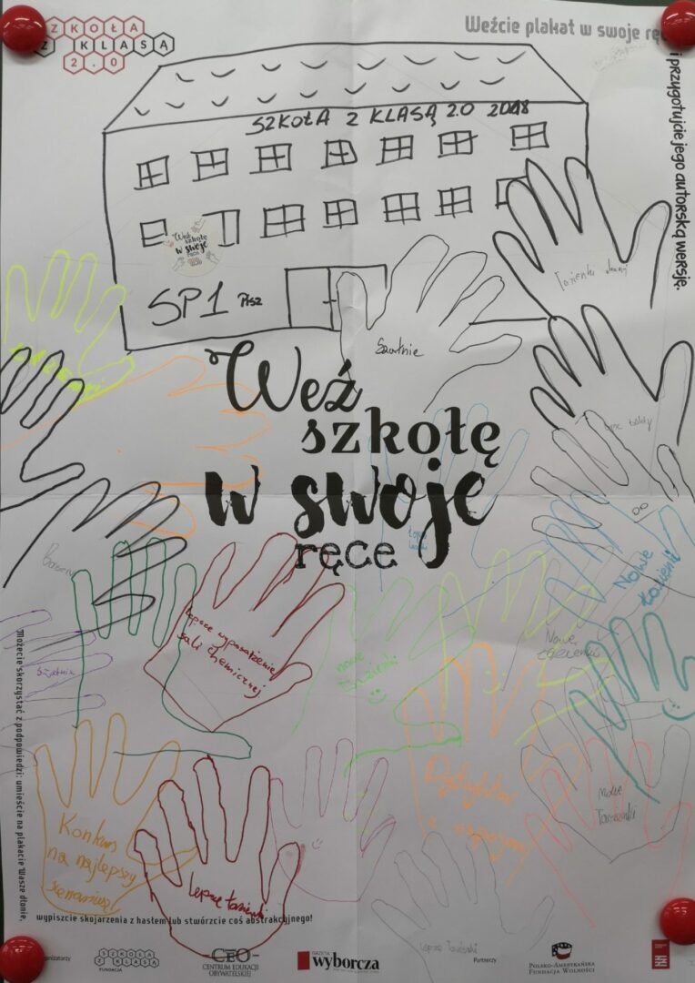 W szkołach powstało wiele wersji plakatów, na których pojawiły się różne interpretacje tegorocznego hasła programu. Wierzymy, że już sama wspólna praca uczniów i nauczycieli nad plakatami, to świetny pretekst do rozmowy o szkole. O tym, że każdy głos się liczy, że każdy może i powinien mieć wpływ na szkołę, na to co się w niej dzieje i jak ona wygląda. Mamy nadzieję, że zespołowe tworzenie plakatów będzie dobrym wstępem do dalszego szukania odpowiedzi na potrzeby wszystkich członków społeczności szkolnej.