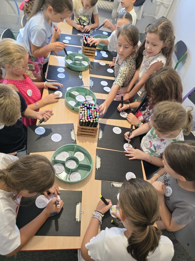 Dzieci ozdobią drewniane magnesy według własnego pomysłu, używając flamastrów i kolorowych dodatków. To twórcza zabawa, która rozwija wyobraźnię i sprawi, że każdy mały artysta zabierze do domu wyjątkową pamiątkę. 🌈🖌