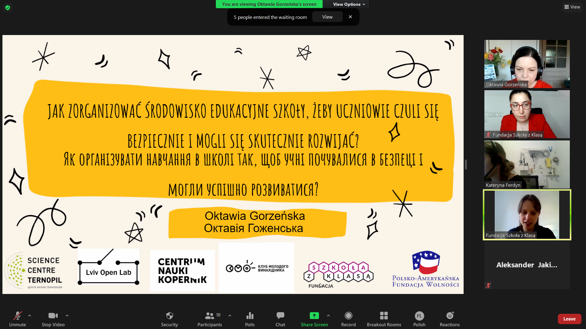 W ramach wsparcia Klubu Młodego Odkrywcy w Ukrainie odbyły się cztery webinary dotyczące organizacji pracy szkoły, środowiska edukacyjnego i innowacyjnych metod nauczania, takich jak: metoda pracy projektowej i metoda odwróconej lekcji. Prowadziły je: Oktawia Gorzeńska – doświadczona dyrektorka szkoły oraz Marta Florkiewicz-Borkowska – Nauczycielka Roku 2017.