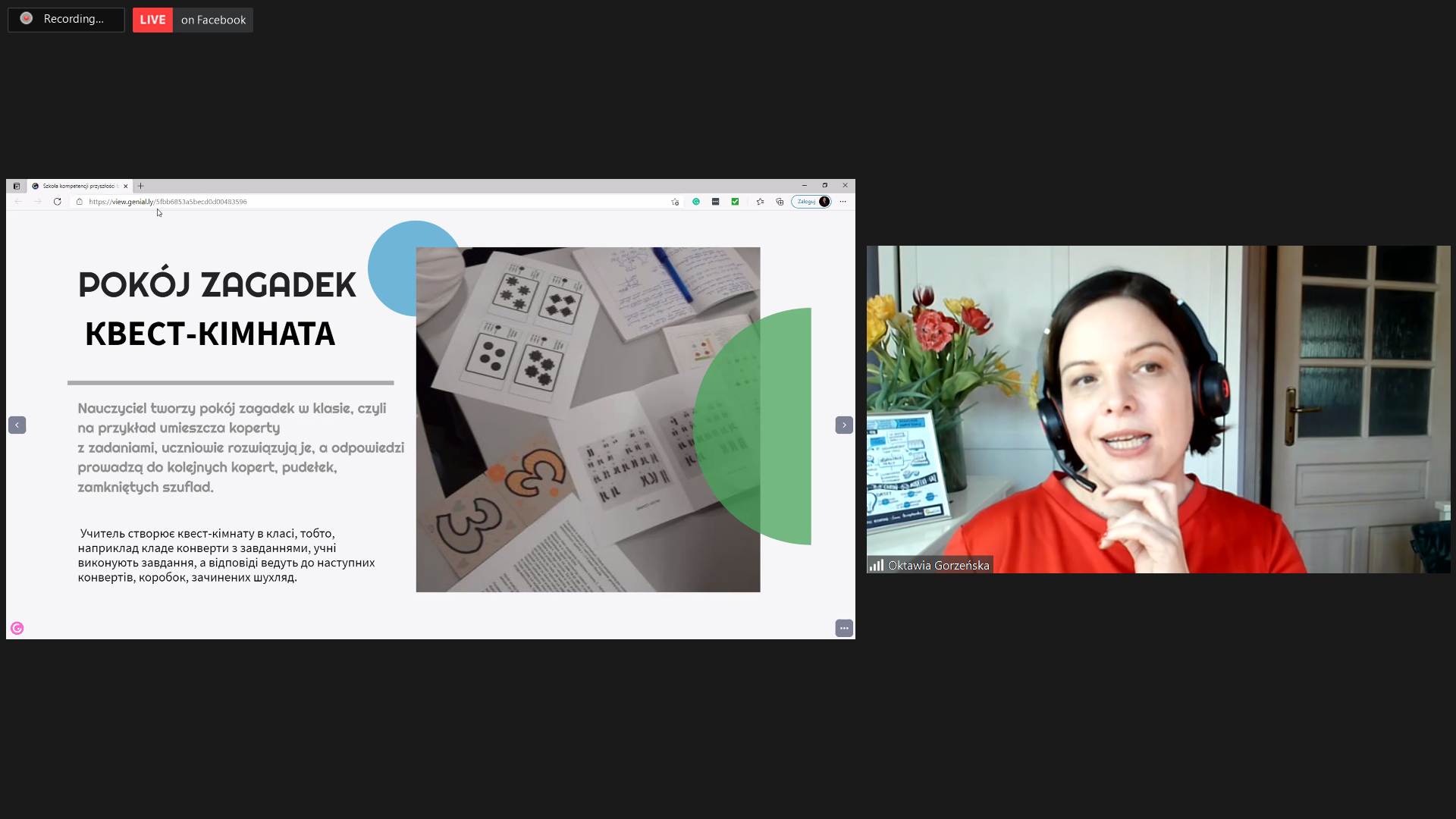 Podczas webinarów został również poruszony wątek pandemii i nauczania zdalnego. Oktawia Gorzeńska dzieliła się swoim doświadczeniem z organizacji pracy szkoły w warunkach pandemicznych oraz wskazywała na niezbędne elementy, które muszą zostać spełnione, aby zdalne nauczanie było efektywne i satysfakcjonujące dla wszystkich. Podkreślała, że edukacja zdalna nie może być przeniesieniem nauczania stacjonarnego 1:1, ale konieczne jest przemyślane i konsekwentne dopasowanie metod i formy pracy do możliwości i potrzeb uczniów i uczennic.