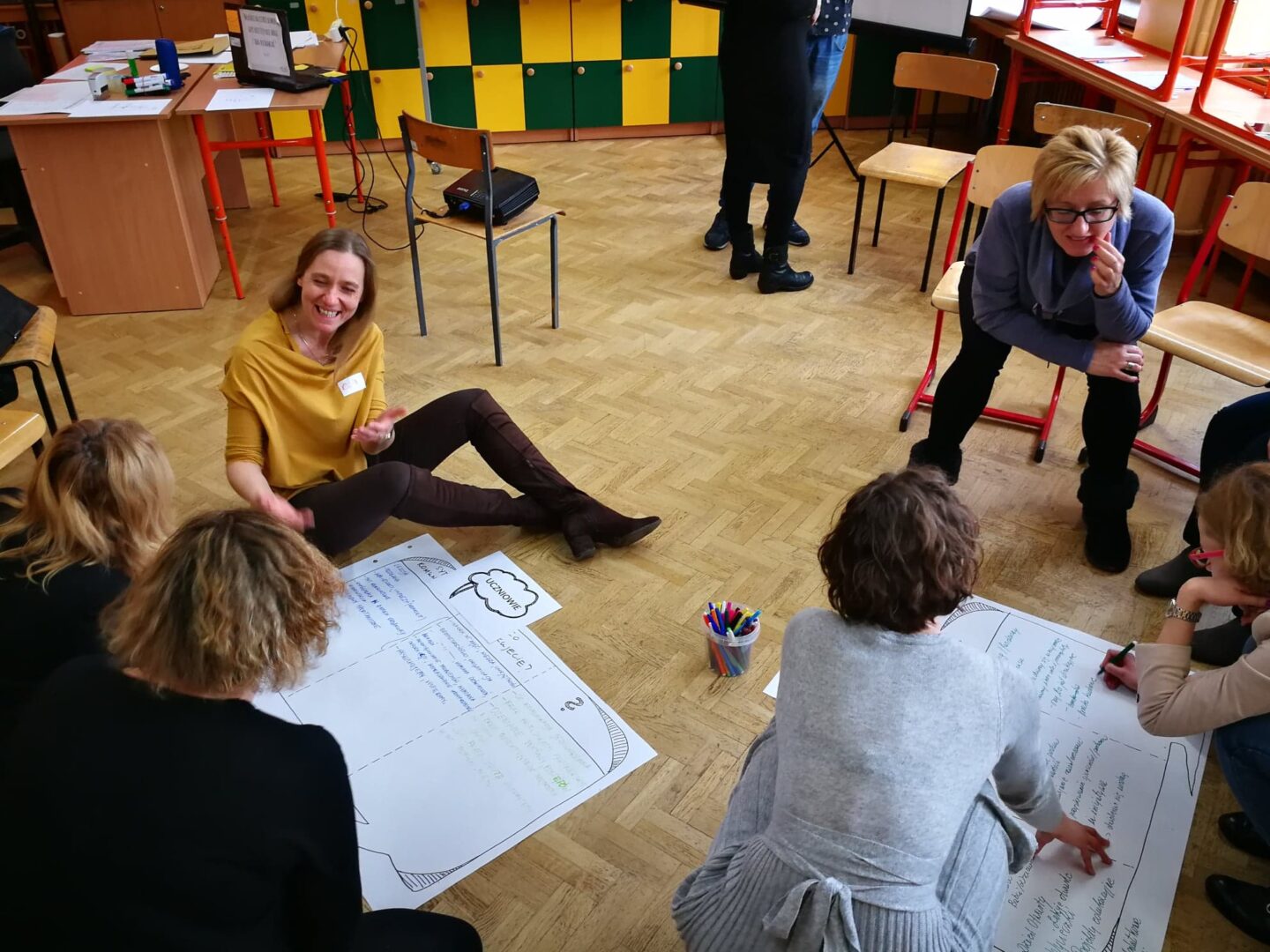 Kolejną część szkolenia prowadzaliśmy już w pełnym składzie, w grupach zasilonych przez uczestników Szkoły z Klasą 2.0. Przygotowując wiosenne spotkania staraliśmy się wybrać temat, który byłby uniwersalny i przydatny w codziennej pracy nauczycieli. Wzięliśmy pod uwagę, że szkoły w programie przygotowują się do szkolnych festiwali i innych form prezentowania efektów działań. Uwzględniliśmy również docierające do nas głosy, że to komunikacja, a właściwie jej brak lub niedoskonałość, bywa przeszkodą w realizowaniu szkolnych przedsięwzięć. Niezależnie od tego czy są one związane z udziałem w naszych programach, czy nie. Dlatego to właśnie komunikację wzięliśmy na warsztat!