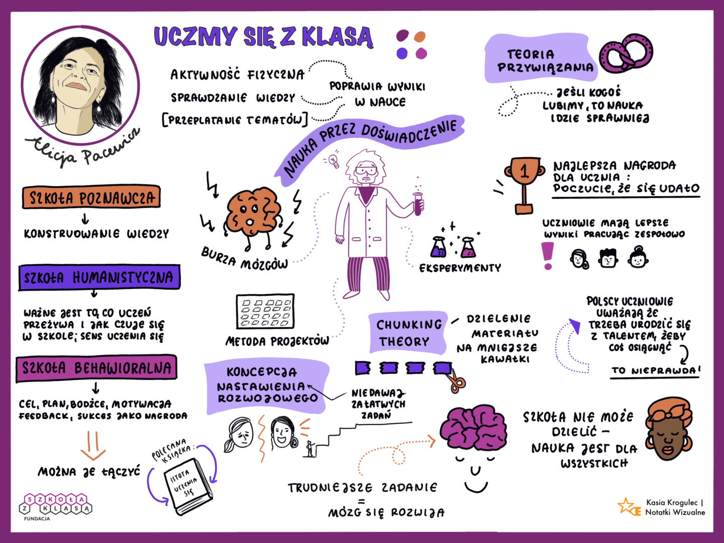Podczas wydarzenia była też z nami ekspertka edukacyjna, przewodnicząca Rady Fundacji Szkoła z Klasą Alicja Pacewicz, która przybliżyła kilka wpływowych teorii dobrego uczenia się. Nie zabrakło Piageta, Wygotskiego czy Dwecka, a wszystko po to, by zobaczyć, co z tych teorii wynika dla nauczycieli i uczniów również w kontekście zdalnego nauczania.