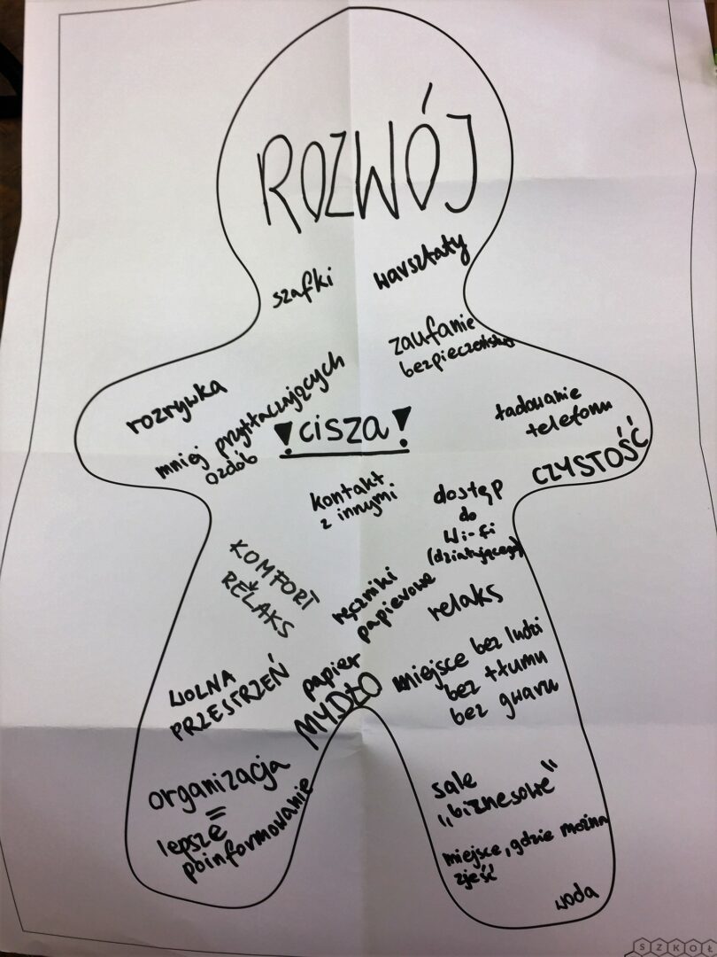 Co ciekawe podczas naszych warsztatów w ogóle nie pojawiały się potrzeby związane z edukacją i wyposażeniem sal w elementy naukowe.