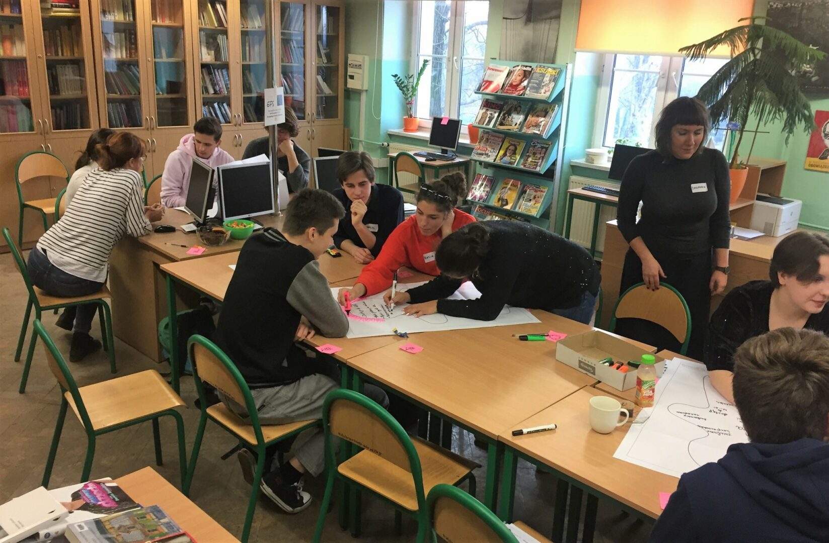 Pojawiały się również pomysły na zrobienie czegoś w bibliotece. Cieszy fakt, że uczniowie dostrzegają tę przestrzeń na forum szkoły, jako miejsce dość atrakcyjne do przebywania podczas przerw i na lekcjach.