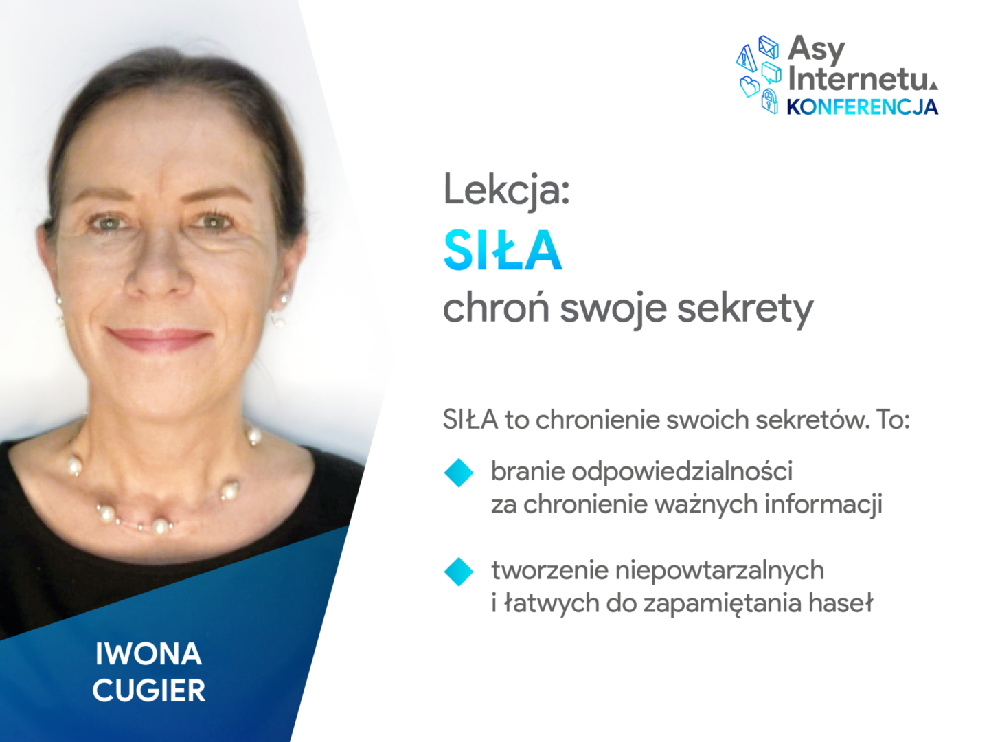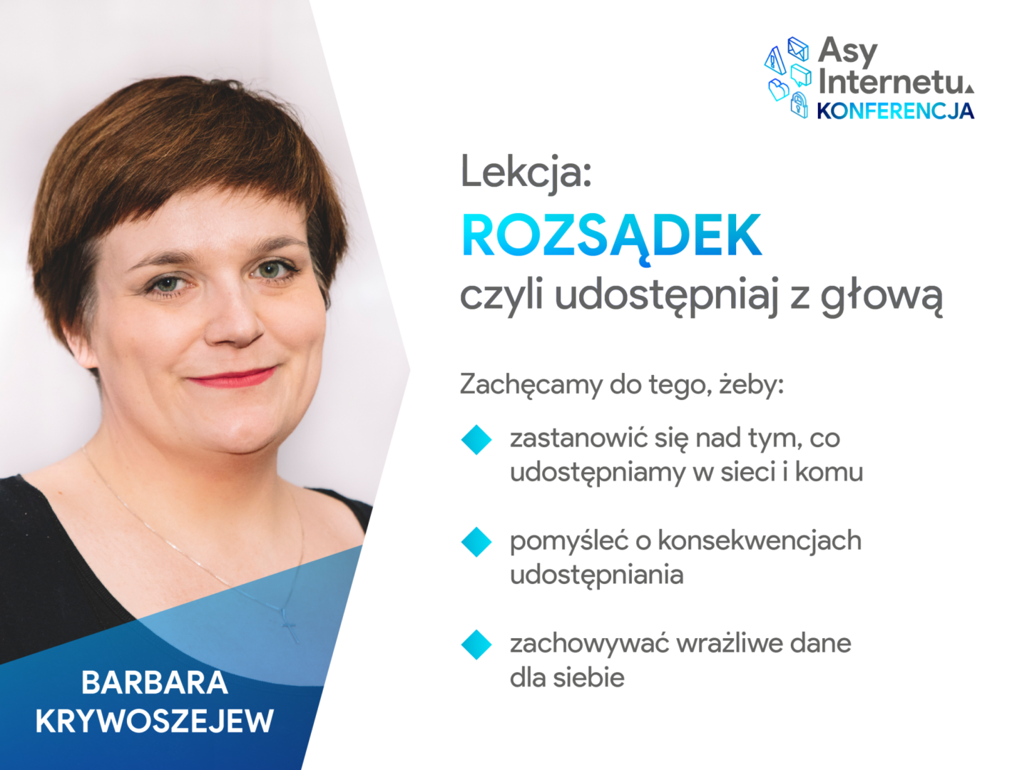 Pierwszą część konferencji kierujemy do uczniów klas 5-7 szkół podstawowych. 30-minutowe lekcje online poprowadzą trenerki i trener programu. Będziemy się wspólnie uczyć o cyberbezpieczeństwie i wartościach Asów Internetu. Zaproś Asy Internetu na swoje lekcje!